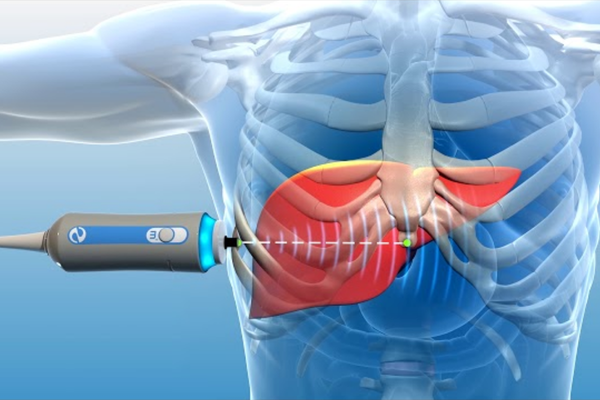 Painless vibrations are sent into the liver to measure how stiff or fatty the tissue is.