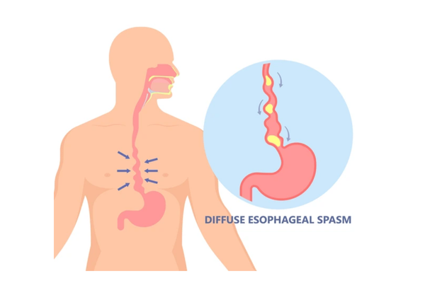 Multiple uncoordinated contractions in the esophagus leading to discomfort and swallowing issues.